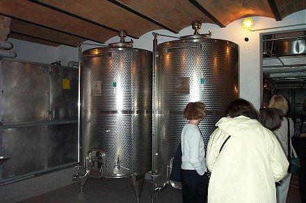 Inside, fermentation tanks for first step in the wine making process